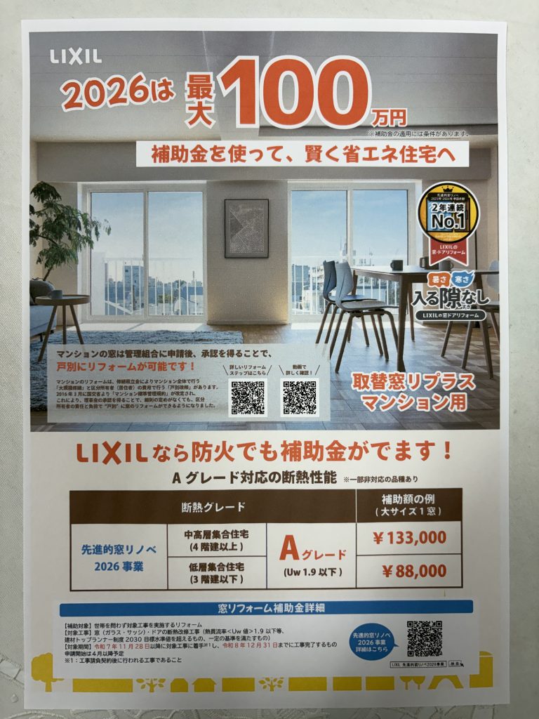 2026年も取替窓リフォームで補助金が出ます!