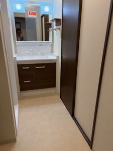 キッチン レンジフード及びガスコンロ取替工事、洗面室の改装工事